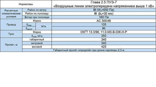 Габаритный пролёт определён при длине гирлянды 2,3 м.